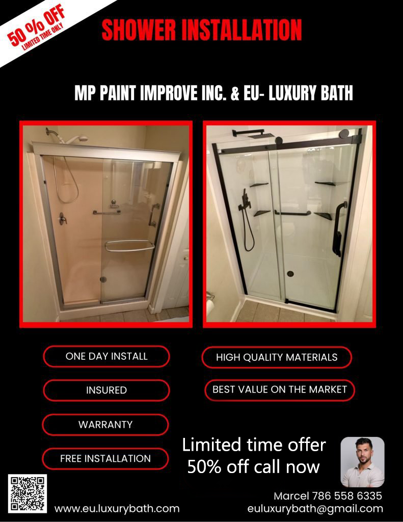 At EU-Luxury Bath, we are dedicated to transforming bathrooms into luxurious, functional spaces that reflect your unique style and needs. With years of experience in bathroom remodeling and renovation, our team of skilled professionals specializes in delivering high-quality craftsmanship and innovative designs. From sleek walk-in showers to custom bathroom mirrors and complete remodels, we handle every detail with precision and care. Our commitment to using the finest materials and modern techniques ensures your bathroom not only looks stunning but also stands the test of time. We believe in creating spaces that blend comfort, functionality, and elegance, offering you a bathroom you’ll love for years to come. Let us help you bring your vision to life with our unparalleled expertise and personalized service.